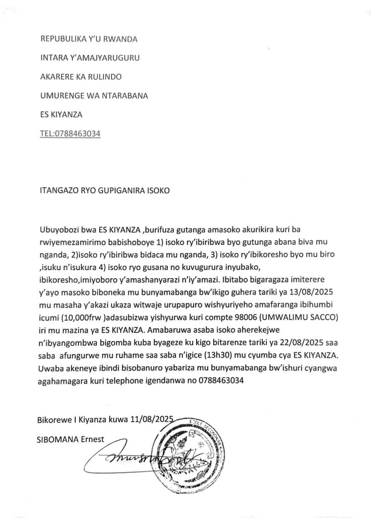 ES KIYANZA: Isoko ryo gusana no kuvugurura inyubako, ibikoresho, imiyoboro y’amashanyarazi n’iy’amazi (Deadline: 22/08/2025)