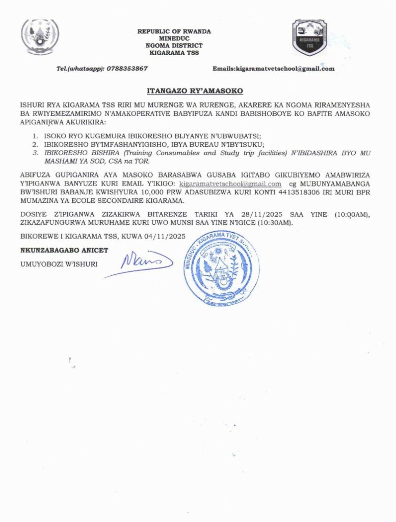 KIGARAMA TSS: Isoko ryo kugemura ibikoresho by’ubwubatsi ( Deadline: 28/11/2025)