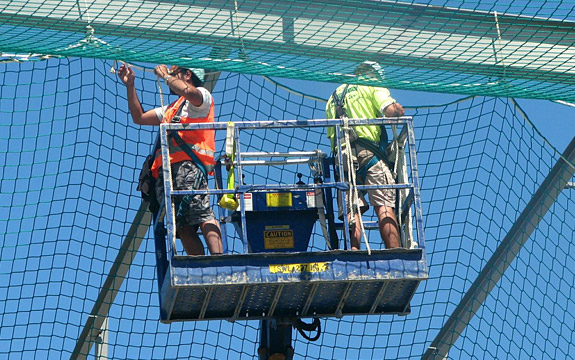 Safety measures like guardrails, nets, and harnesses must be used when working at height or around unstable structures.