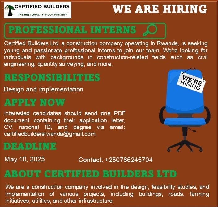 Certified Builders Ltd is a construction company registered in Rwanda founded by the qualified experts in engineering field. Our values were founded on the desire for design excellence, environmental sustainability, and high quality innovation and end-user satisfactions where the best quality is our priority.