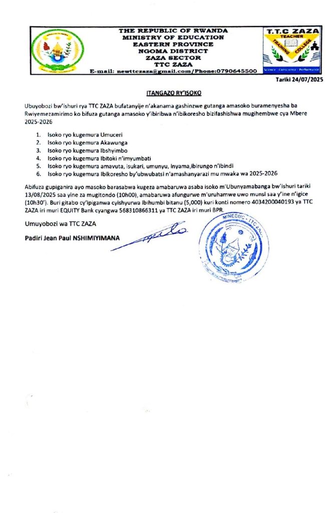 TTC ZAZA: Isoko ryo kugemura ibikoresho by’ ubwubatsi n’amashanyarazi mu mwaka wa 2025-2026 (Deadline: 13/08/2025)