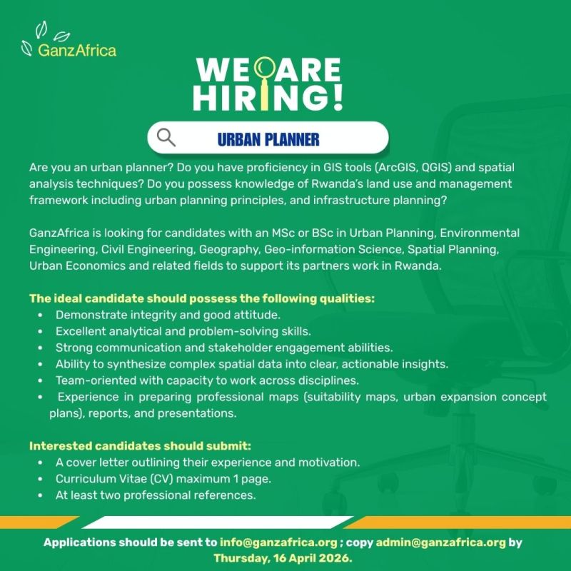 Urban planner at GanzAfrica (Deadline : 16/04/2026)